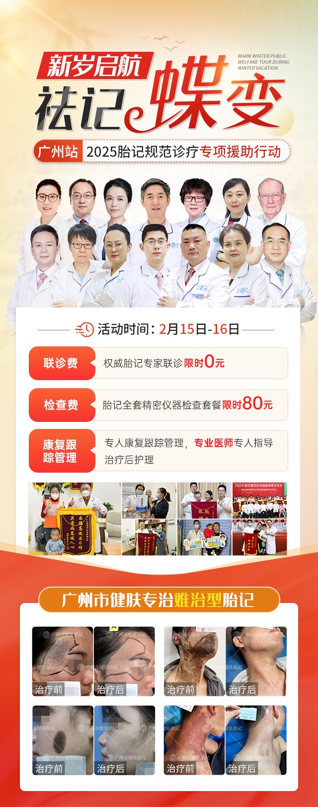 新的一年已然开启,你的胎记问题解决了吗?本周末(2月15日-16日),广州健肤将开展2025胎记规范诊疗专项援助行动,助力胎记患者祛记蝶变!广州健肤作为华南地区公益帮扶定点机构,积极参与各项胎记诊疗帮扶活动,对符合条件的胎记患者进行公益援助。本次活动已经获得广州健肤援助办批准。